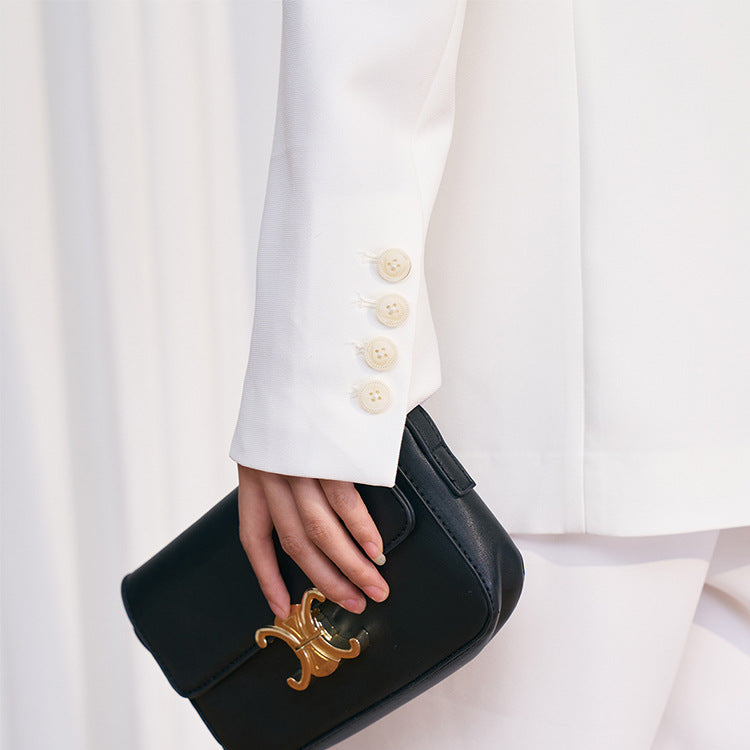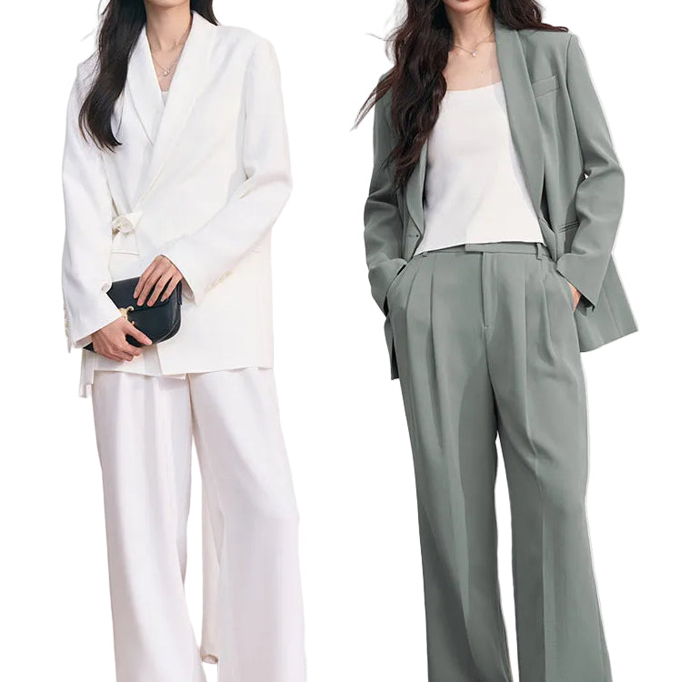 レディース向けカジュアルスーツ。シンプルなデザインにストラップディテールが加わり、きちんと感とトレンド感を絶妙にミックス。ポリエステル素材ならではのなめらかな質感と美しいシルエットが、着る人の魅力を引き立てます。上下セパレートで自由なコーディネートが楽しめ、オフィスカジュアルからデートシーンまで幅広く活躍。ホワイト・オリーブグリーン・ブラックの3色展開で、季節やシーンに合わせたスタイリングが叶います。